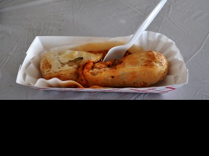 Our food of the day for day 2 of Jazz Fest, the Crawfish Strudel.
