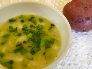 This is recipe with many virtues. Foremost, it hits the spot in this chilly season. For instance: before or after a night parade. It's also fast & easy. It's cheap too, perfect for these inflationary times. Finally, it's adaptable. The version presented here is pretty rustic, but you can give it the fancy Vichysoise treatment by pureeing the finished (and cooled!) soup and adding a little cream. If you use olive oil instead of butter and vegetable broth instead of chicken broth, the result will will be vegan. Or, go in the opposite direction and add a cup of chopped ham in the simmering stage.