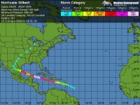 24 years ago (September 12th, 1988), Jamaica was blasted by the then category three storm, Hurricane Gilbert. On its way to the Yucatan, Gilbert became a huge category five hurricane with 185mph winds and a then record-setting 888 millibars of low pressure.