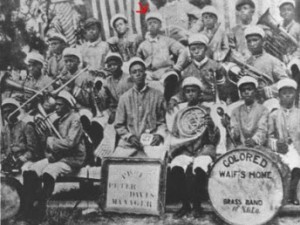 The earliest known photo of Armstrong, circa 1912, with the Waif's Home Band. Louis is top middle.